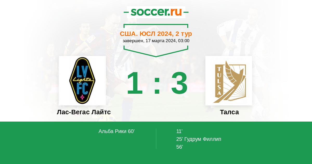 Протокол матча Лас-Вегас Лайтс против Талса