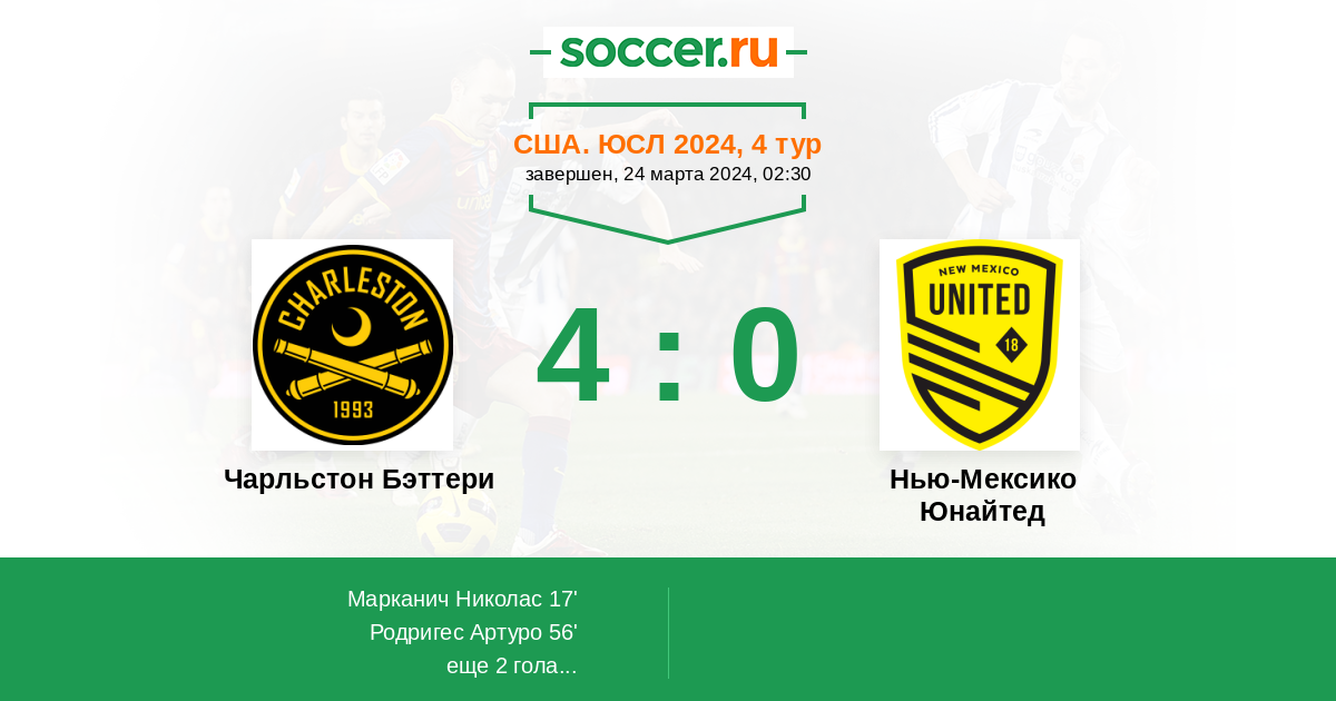 Протокол матча Чарльстон Бэттери против Нью-Мексико Юнайтед