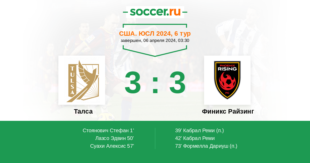 Протокол матча Талса против Финикс Райзинг