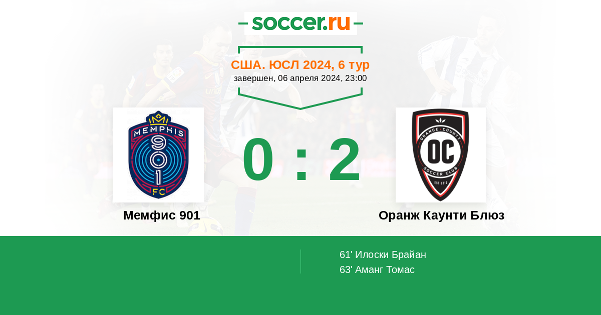 Протокол матча Мемфис 901 против Оранж Каунти Блюз