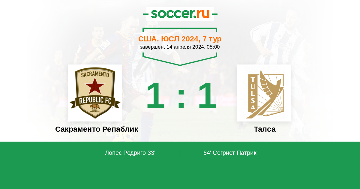 Протокол матча Сакраменто Репаблик против Талса