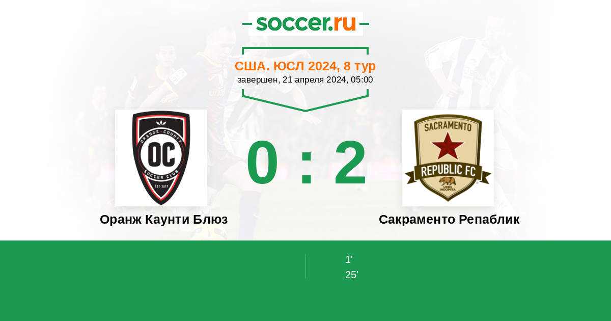 Протокол матча Оранж Каунти Блюз против Сакраменто Репаблик