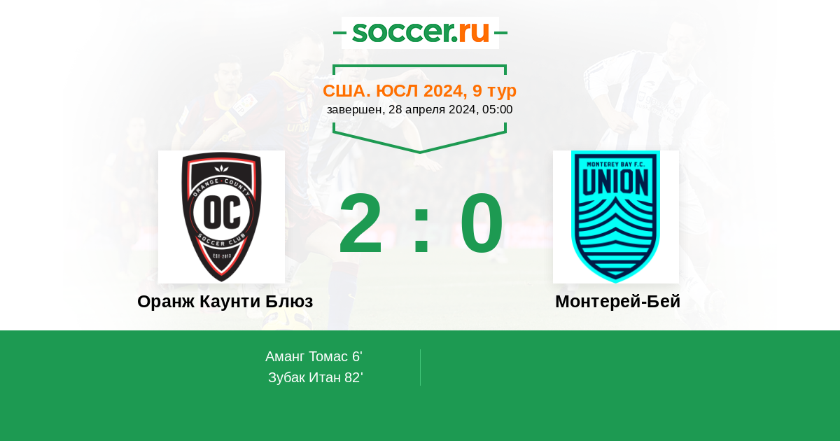 Протокол матча Оранж Каунти Блюз против Монтерей-Бей