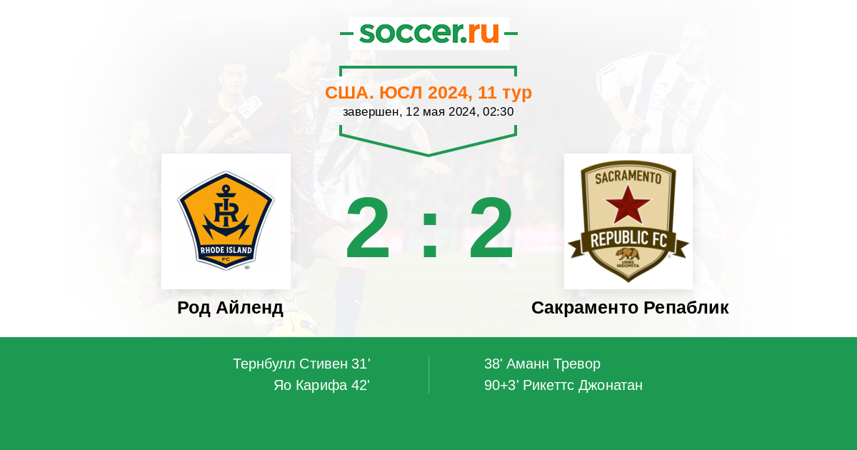 Протокол матча Род Айленд против Сакраменто Репаблик