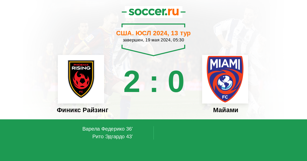Протокол матча Финикс Райзинг против Майами