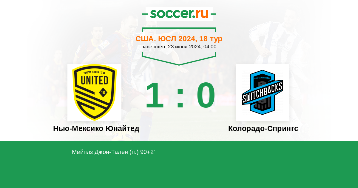 Протокол матча Нью-Мексико Юнайтед против Колорадо-Спрингс