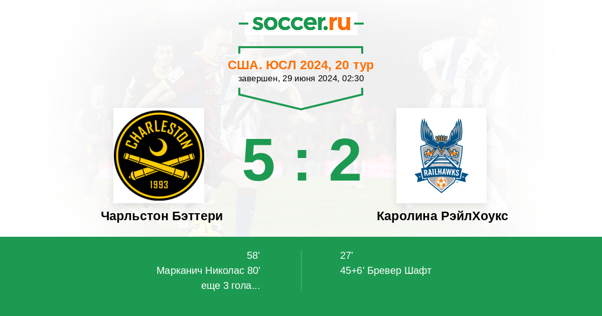 Протокол матча Чарльстон Бэттери против Каролина РэйлХоукс