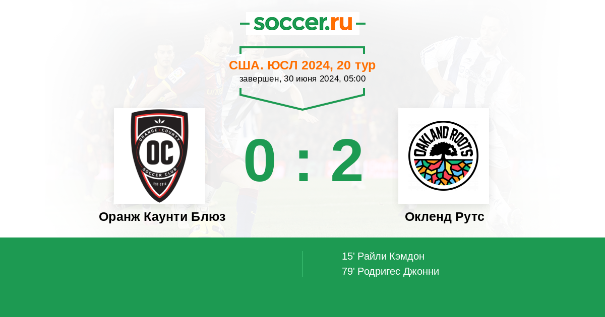 Протокол матча Оранж Каунти Блюз против Окленд Рутс
