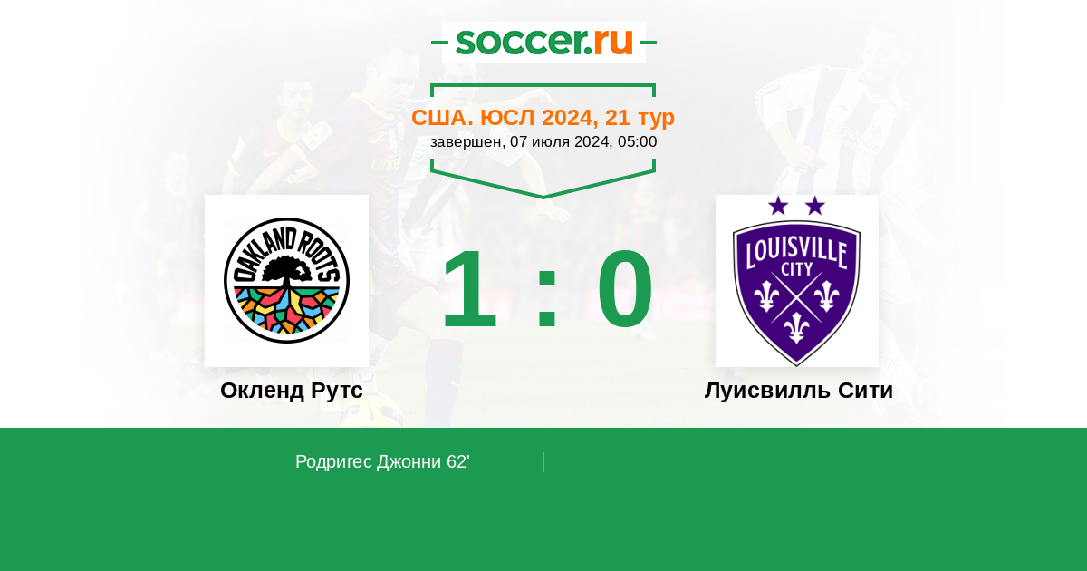 Протокол матча Окленд Рутс против Луисвилль Сити