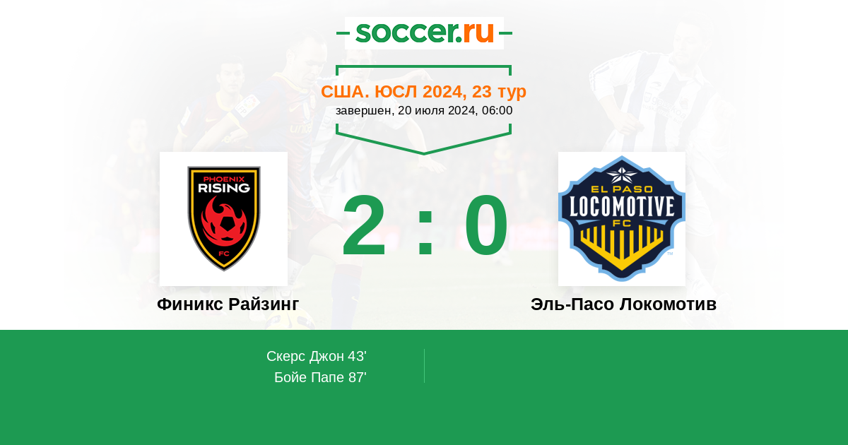 Протокол матча Финикс Райзинг против Эль-Пасо Локомотив