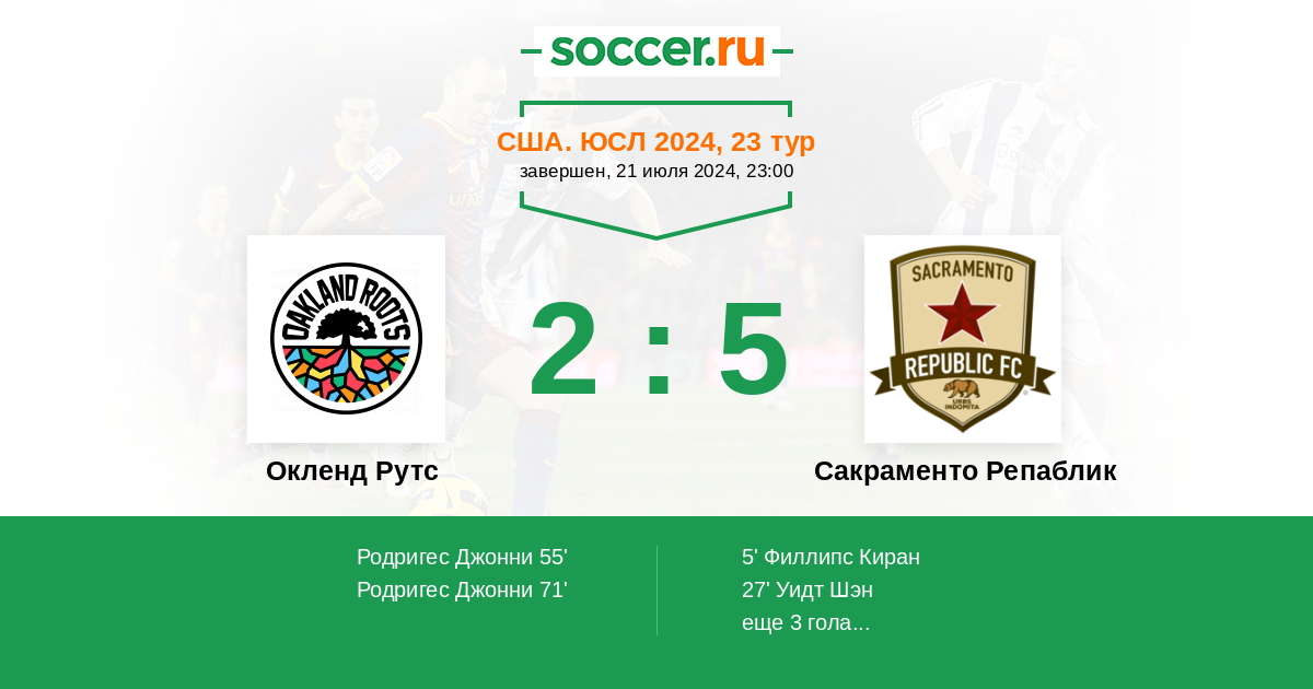 Протокол матча Окленд Рутс против Сакраменто Репаблик
