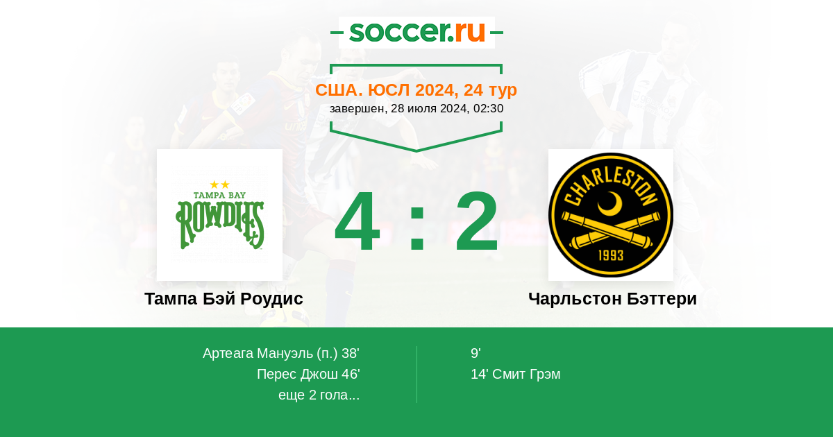 Протокол матча Тампа Бэй Роудис против Чарльстон Бэттери