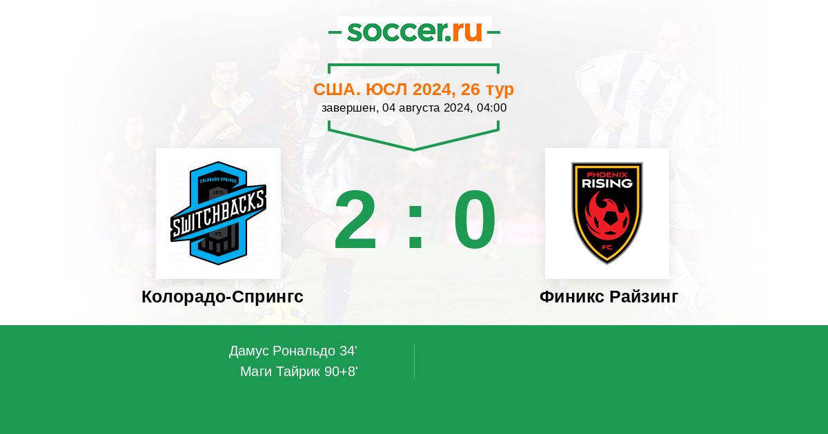 Протокол матча Колорадо-Спрингс против Финикс Райзинг