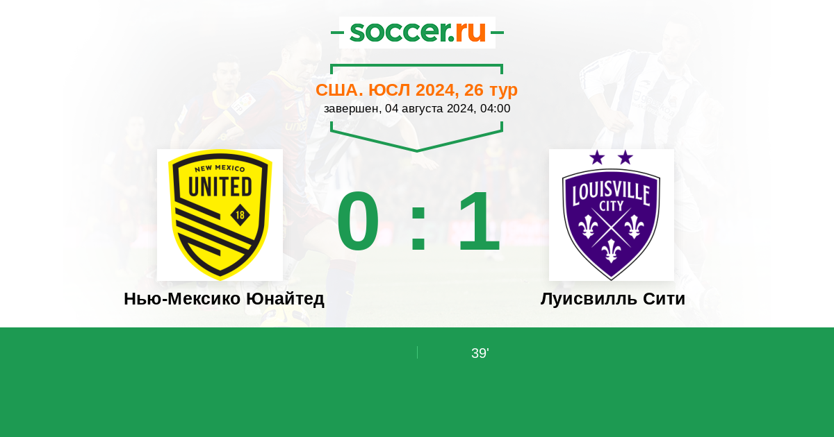 Протокол матча Нью-Мексико Юнайтед против Луисвилль Сити