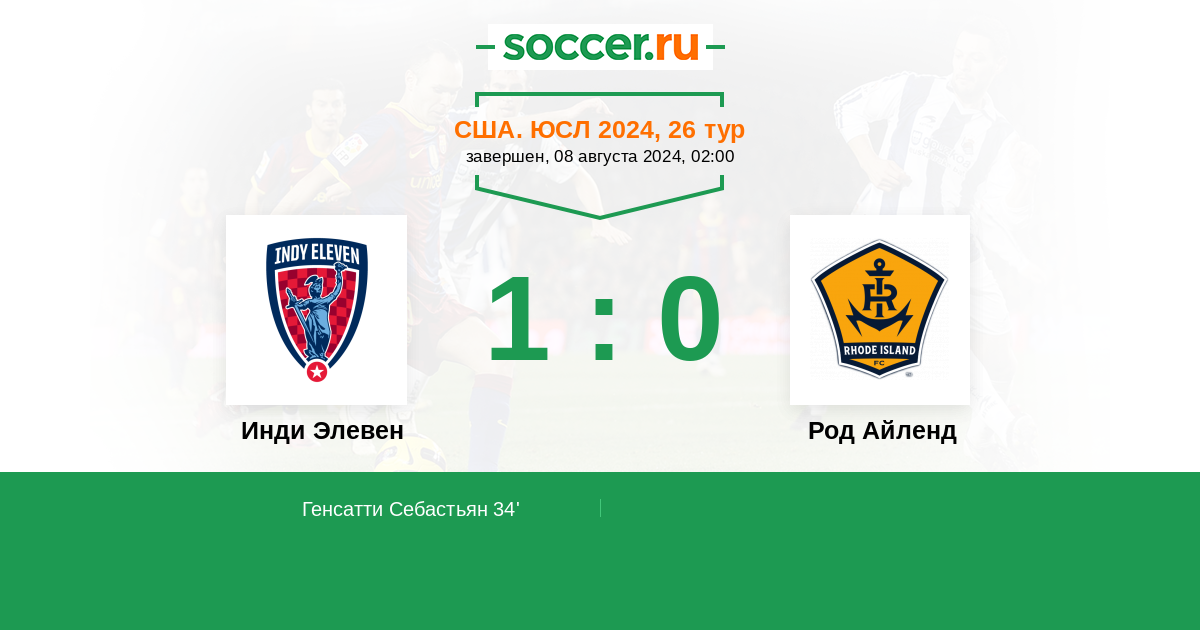 Протокол матча Инди Элевен против Род Айленд