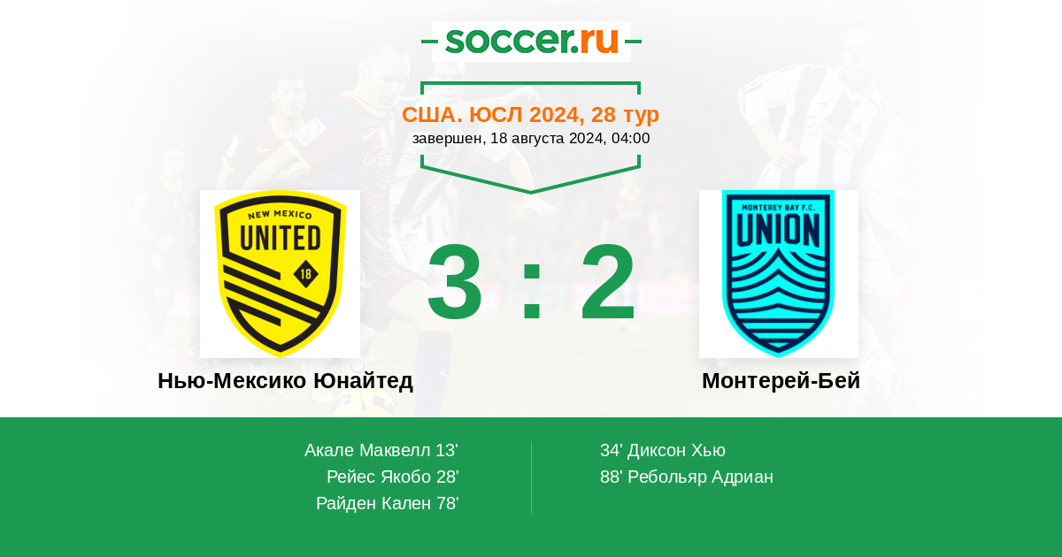 Протокол матча Нью-Мексико Юнайтед против Монтерей-Бей