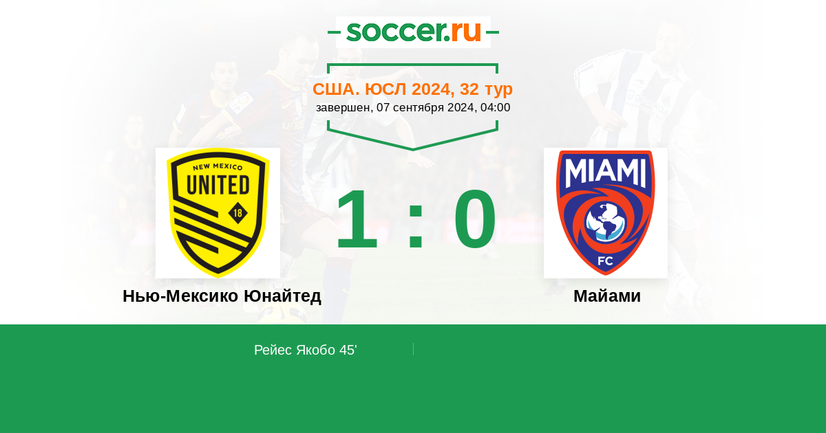Протокол матча Нью-Мексико Юнайтед против Майами