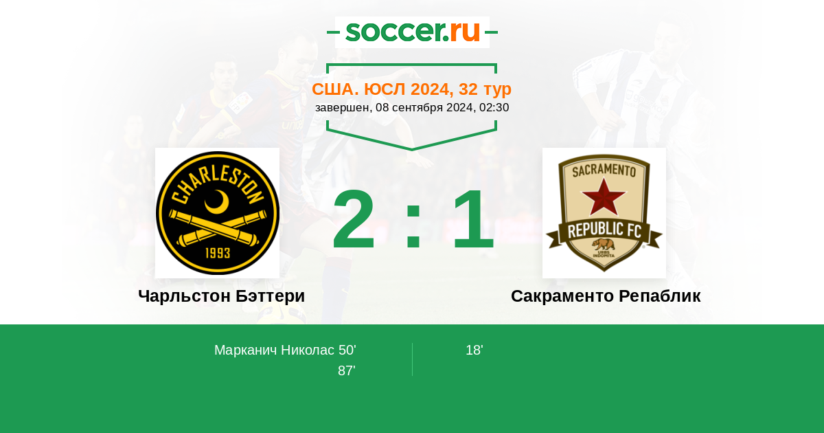 Протокол матча Чарльстон Бэттери против Сакраменто Репаблик