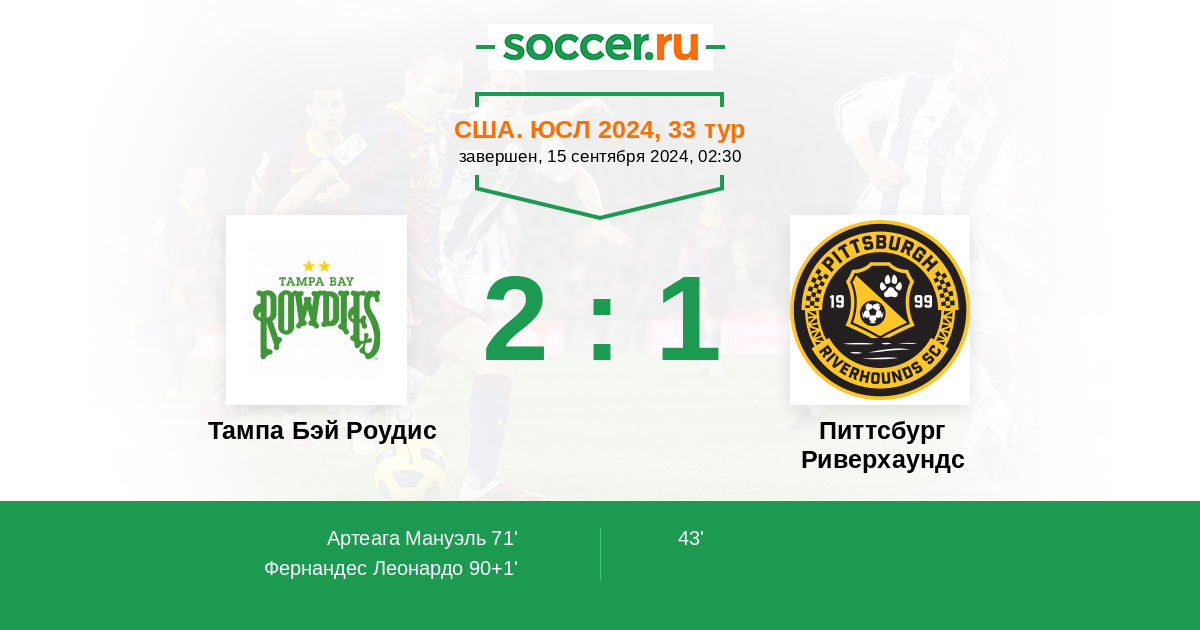 Протокол матча Тампа Бэй Роудис против Питтсбург Риверхаундс