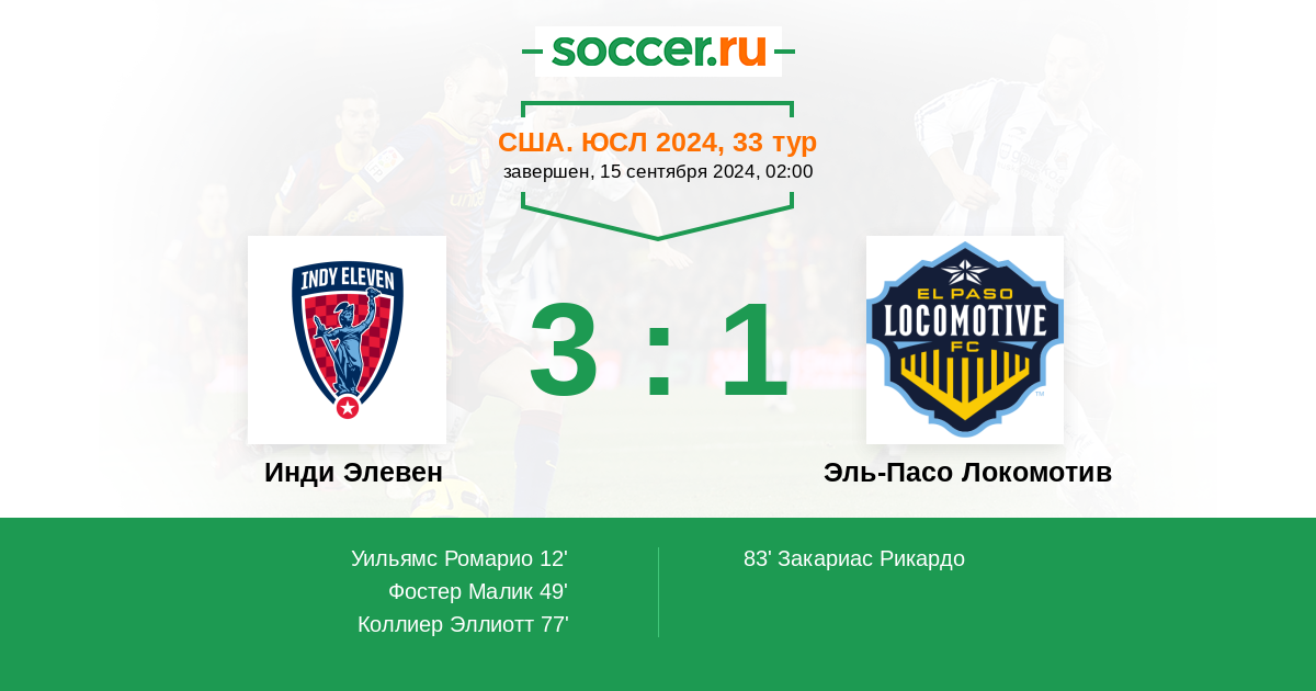 Протокол матча Инди Элевен против Эль-Пасо Локомотив