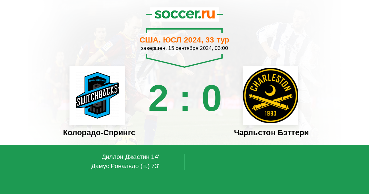 Протокол матча Колорадо-Спрингс против Чарльстон Бэттери