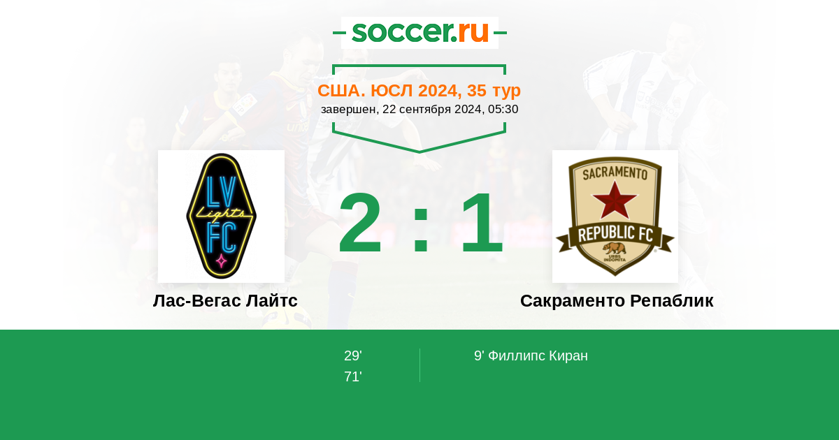 Протокол матча Лас-Вегас Лайтс против Сакраменто Репаблик