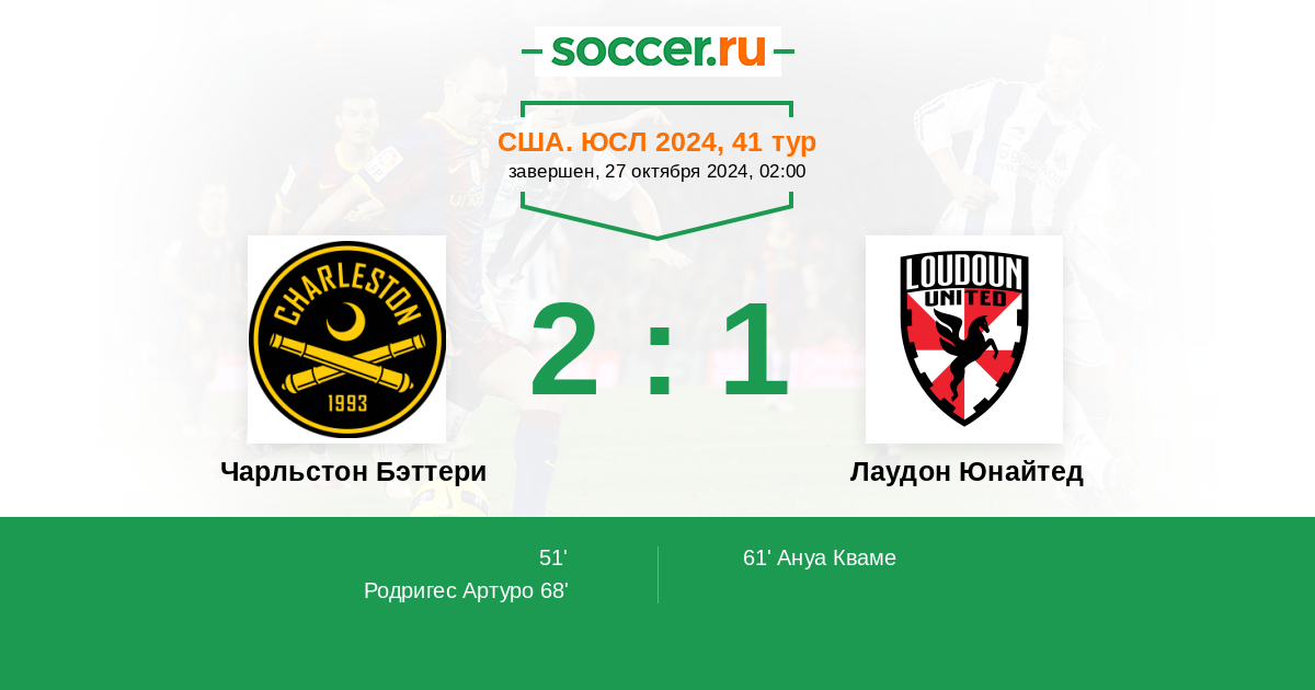 Протокол матча Чарльстон Бэттери против Лаудон Юнайтед