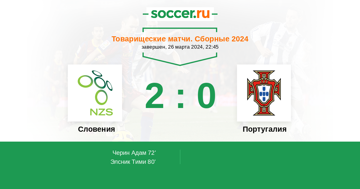 Протокол матча Словения против Португалия