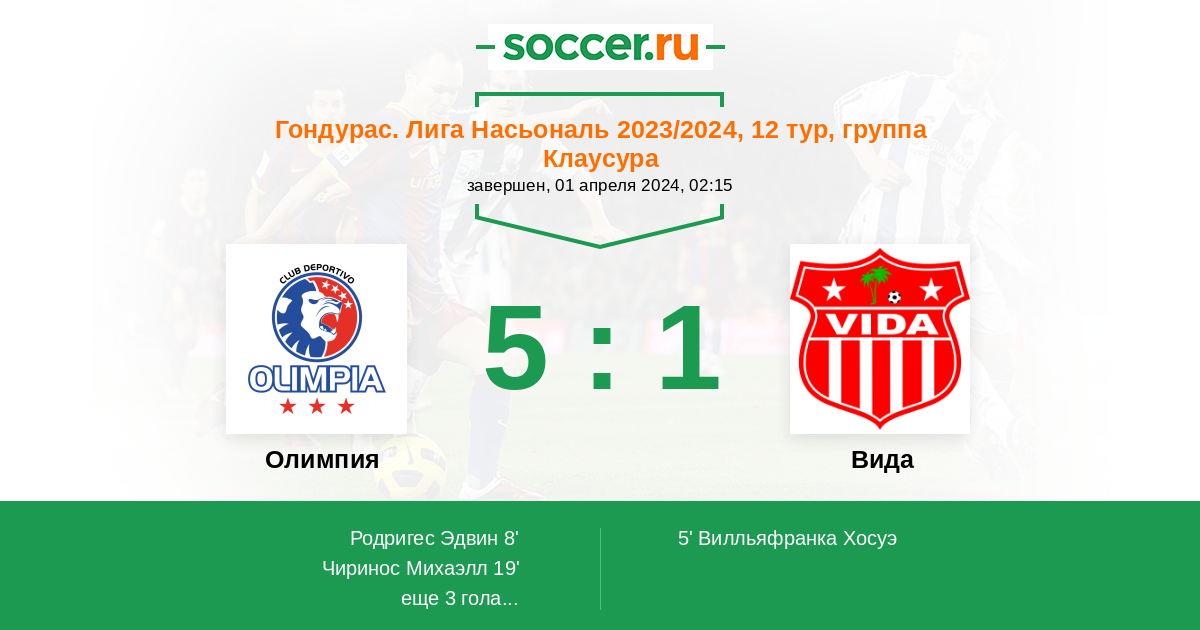 Протокол матча Олимпия против Вида