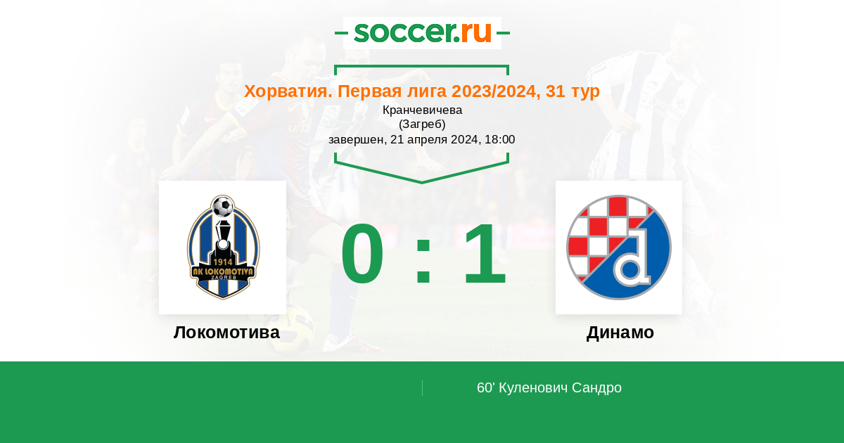60' (0:1) Куленович Сандро (17) (Берно Максим (6))