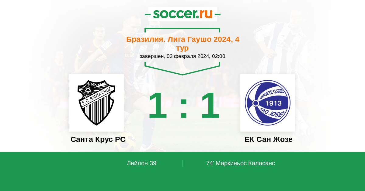 Протокол матча Санта Крус РС против ЕК Сан Жозе
