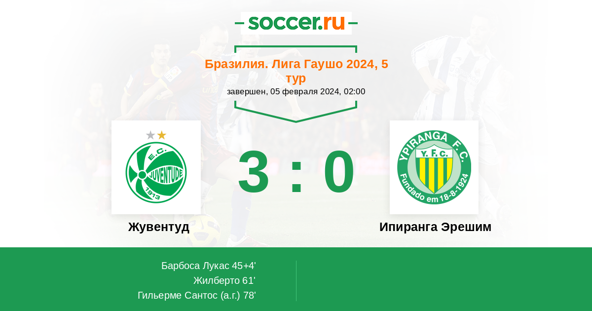 Протокол матча Жувентуд против Ипиранга Эрешим