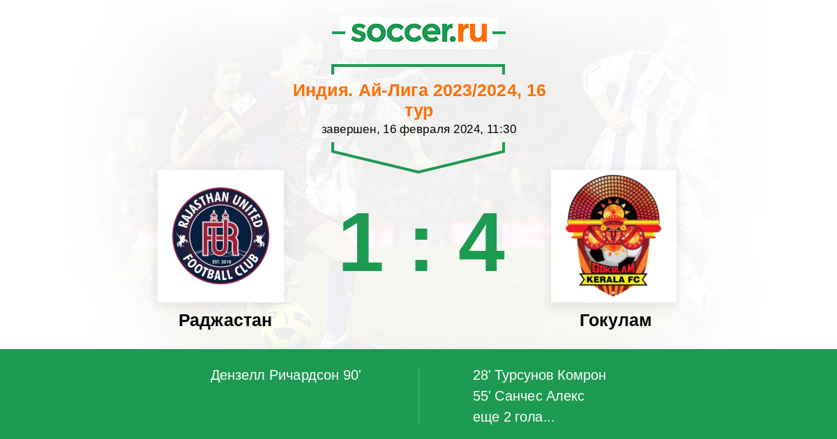 Протокол матча Раджастан против Гокулам