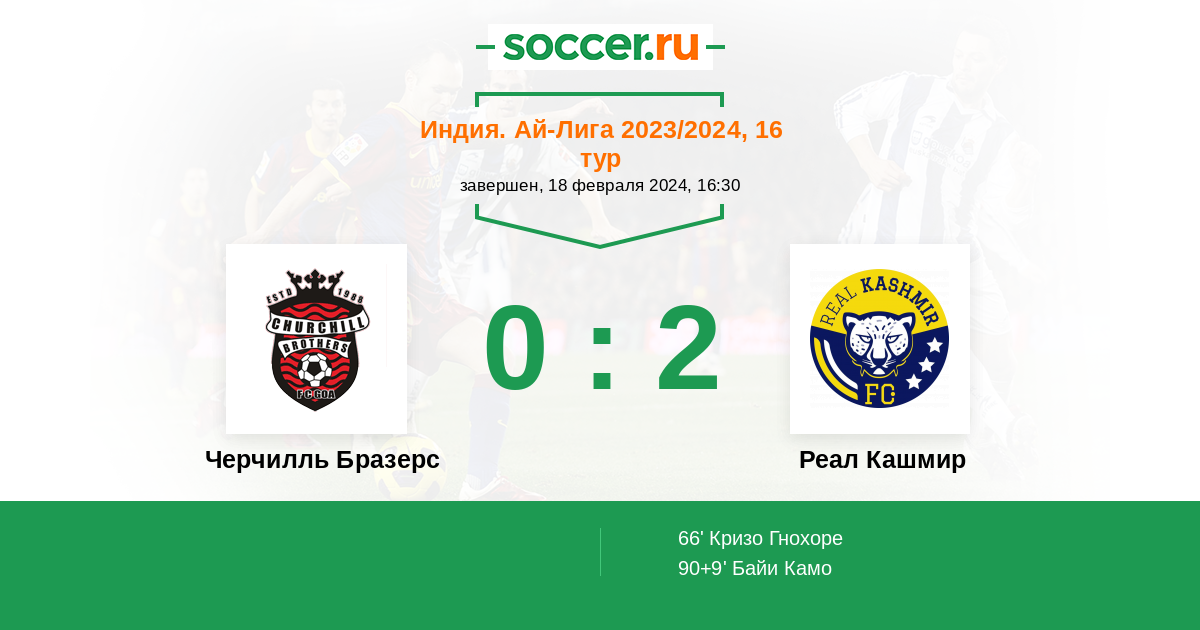 Протокол матча Черчилль Бразерс против Реал Кашмир
