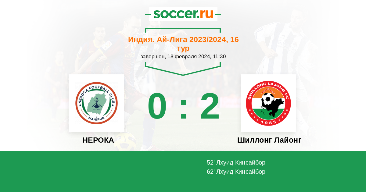 Протокол матча НЕРОКА против Шиллонг Лайонг