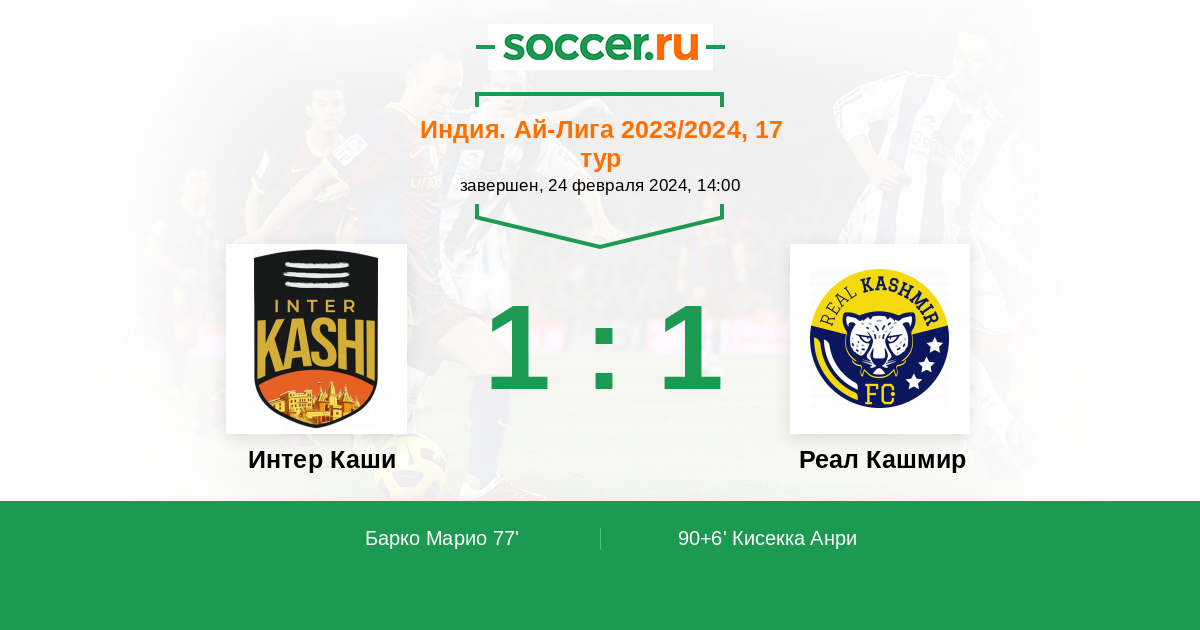 Протокол матча Интер Каши против Реал Кашмир