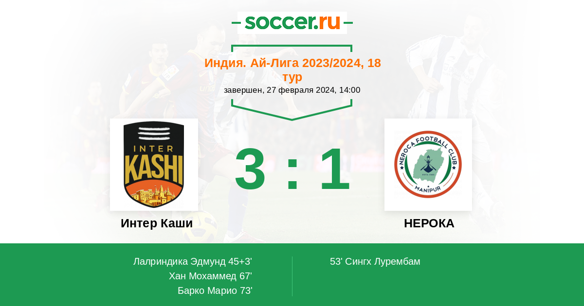73' (3:1) Барко Марио (9) (Лалриндика Эдмунд (17))