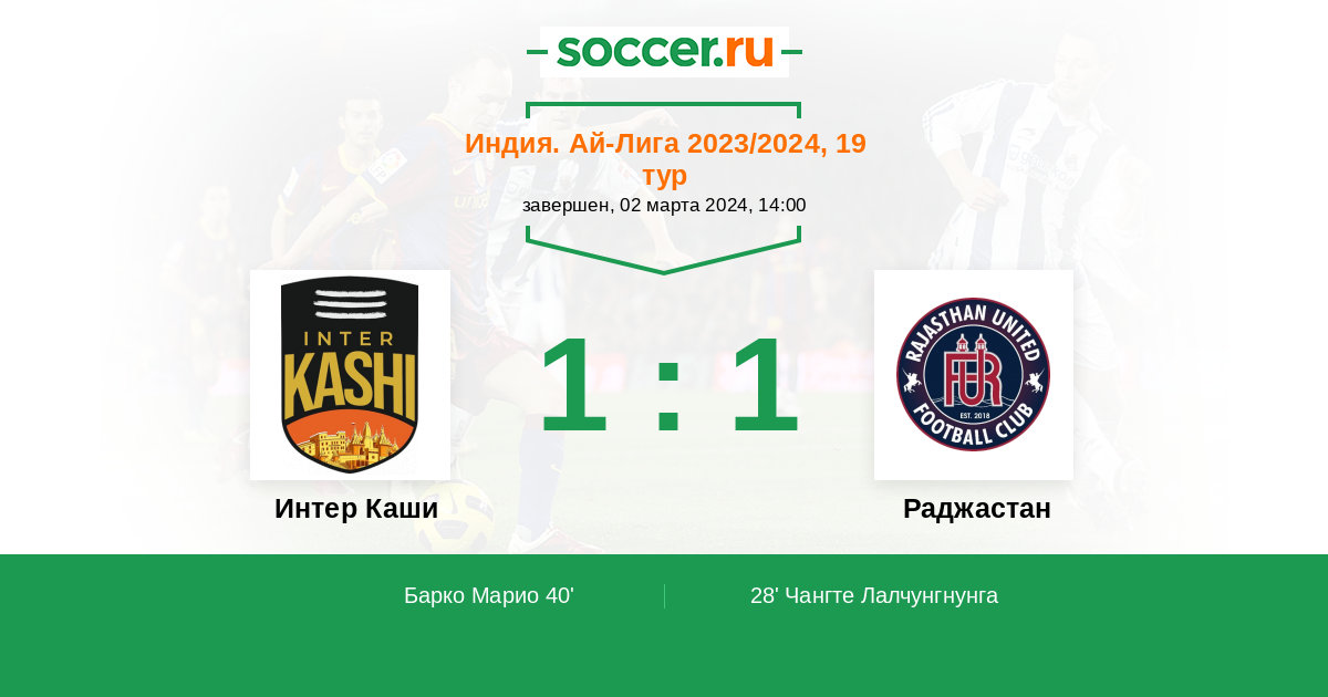 Протокол матча Интер Каши против Раджастан