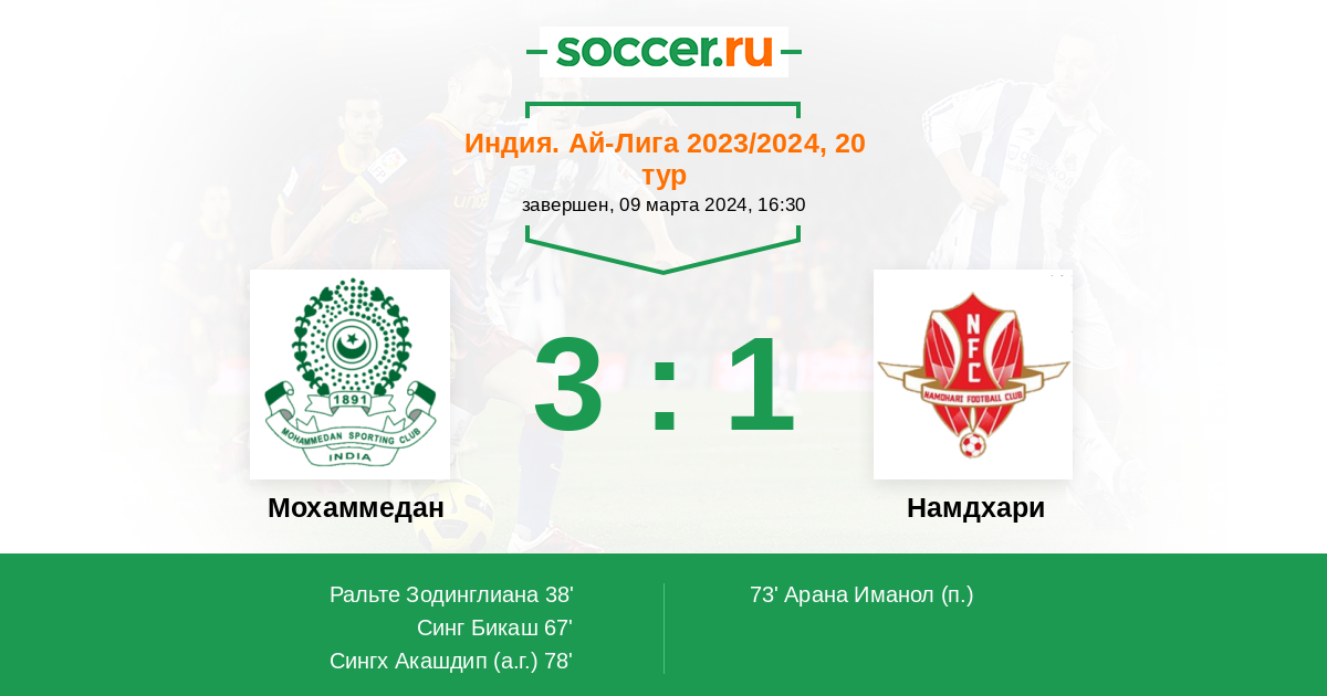 78' (3:1) Автогол Сингх Акашдип (5)