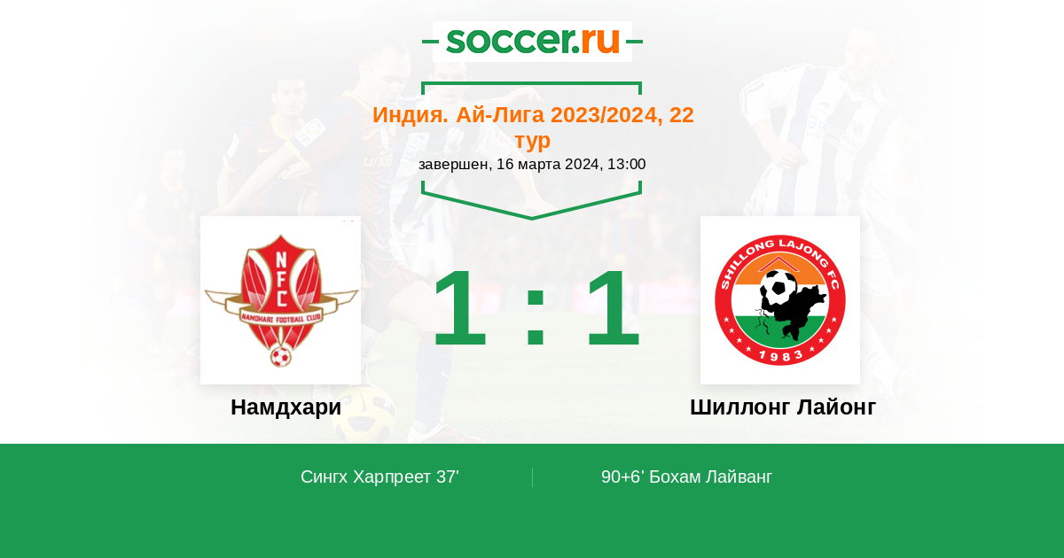37' (1:0) Сингх Харпреет (3) (Банвала Саураб (2))
