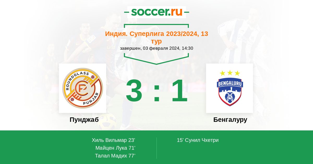 15' (0:1) Сунил Чхетри (11) (Синг Наорем (32))