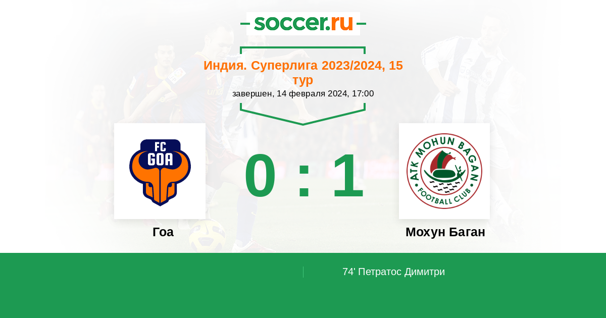 Протокол матча Гоа против Мохун Баган