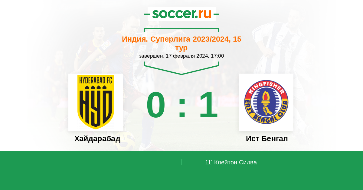 Протокол матча Хайдарабад против Ист Бенгал