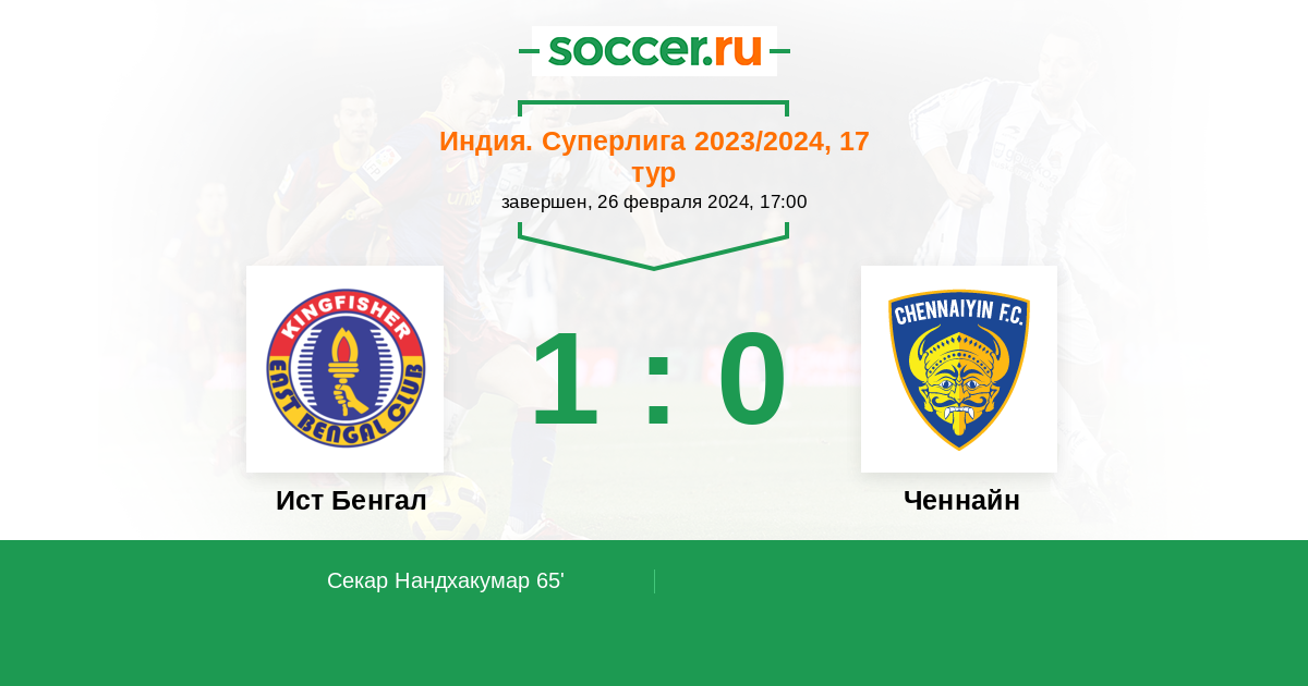 Протокол матча Ист Бенгал против Ченнайн
