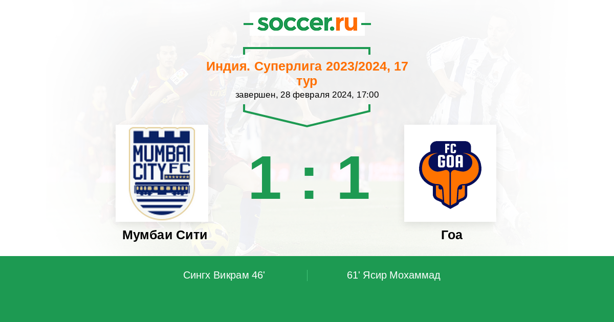 Протокол матча Мумбаи Сити против Гоа