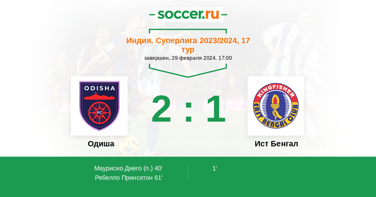 Протокол матча Одиша против Ист Бенгал