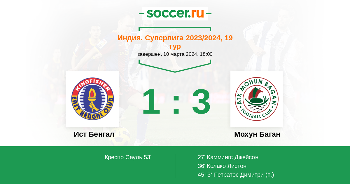 53' (1:3) Креспо Сауль (21) (Клейтон Силва (10))