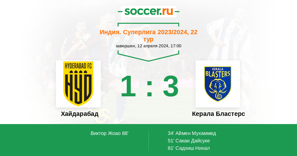 Протокол матча Хайдарабад против Керала Бластерс