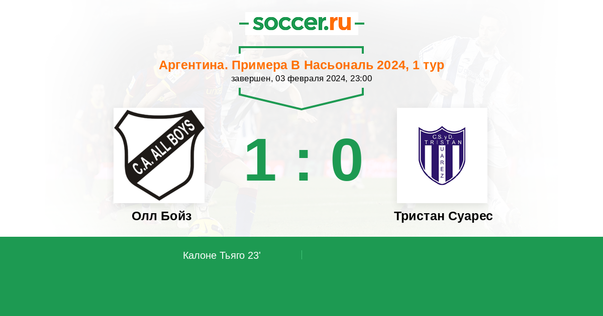 Протокол матча Олл Бойз против Тристан Суарес