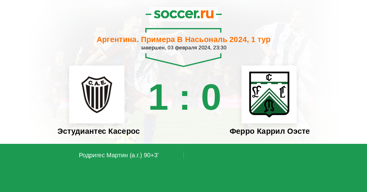 Протокол матча Эстудиантес Касерос против Ферро Каррил Оэсте